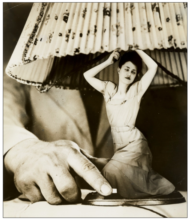 Al recorrer la exposición recuerdo de inmediato algo que subí hace poco a este blog. Me refiero a un post sobre una exposición en el MET de Nueva York, que mostraba ejemplos de manipulación de imágenes antes de 1990, cuando se perfeccionó el retoque digital (da click aquí para ver entrada «Sí, éramos humanos antes de Photoshop»). Aquí en el MALBA encuentro en original la foto de Stern que incluí en aquel post, misma con la que abro esta entrada. Se trata de una mujer/lámpara que decora la casa y es activada por una mano masculina. Vista sólo como muestra de pericia técnica, la imagen es fantástica, pero con el contexto añadido de crítica social e interpretación del sueño cobra una dimensión mucho más rica y compleja, abre nuevas posibilidades de lectura.