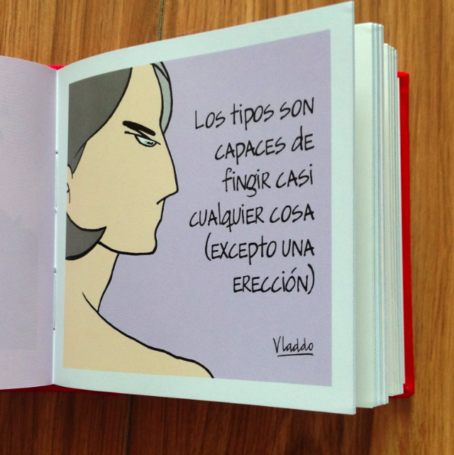 Con respecto al trabajo de Vladdo, debo decir que un par de frases me parecieron buenas, como ”Aunque muchos tipos son incapaces de satisfacer a una mujer, insisten en tener dos”, pero el resto no es muy diferente a algunas que he visto en la red. Incluso la que se encuentra en la imagen central es una copia de las que circulan en la red. La idea no es mala, pero preferiría más originalidad.