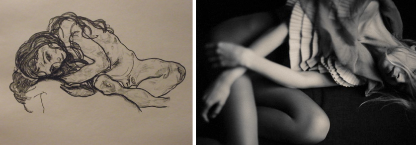 Como bien dices y demuestras, las fotografías fueron hechas bajo el influjo de Schiele, sin duda. Y mi primera impresión me la reforzaste.