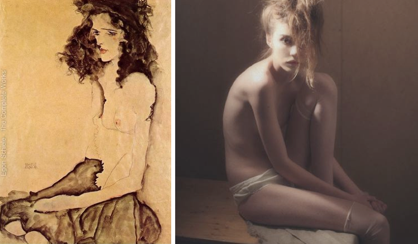 Screen shot 2013-06-27 at 11.16.50 AMEn continuación al pequeño debate que se generó en torno a los desnudos de la rusa Alina Lebedeva, aporto estas imágenes. Para quienes no siguieron los comentarios, va el resumen: ayer que subí algunas piezas de la fotógrafa Lebedeva (aquí el link: http://wp.me/p1POGd-1yW ), Alberto Dieguez comentó que le daban un aire a Egon Schiele, en lo que coincidí. Luego, otros colegas expresaron sus dudas, porque los desnudos de Schiele son casi ginecológicos mientras los de Lebedeva son sugeridos; allá la luz es muy fuerte y contrastada, en tanto la iluminación que maneja la rusa es tenue. Creo que ambos puntos tienen razón: hay un Schiele crudo, de una sexualidad brutal y contrastes encendidos, pero también está el insinuado, que se muestra aquí (y es mi favorito).