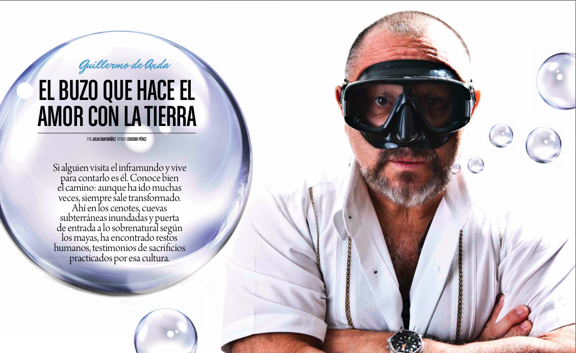 Guillermo no necesita decir que le fascina lo que hace. Transpira entusiasmo, mientras gesticula se le desborda la emoción por lo que ha visto. «El amor por mi trabajo se parece a la comezón: me rasco y rasco, pero el ardor sólo aumenta». Ya entrado en gastos, lleva la metáfora más allá: «Sumergirme en el agua es como hacer el amor. Para la cultura maya, las cavernas son seres femeninos, representan el útero de la tierra. Cuando entro en ellas, me reciben y establecemos un ritmo. La piel se llena de sensaciones intensas y después viene una especie de éxtasis. Luego tengo que salir, pero me voy diferente, transformado. No hay otra manera de bucear».