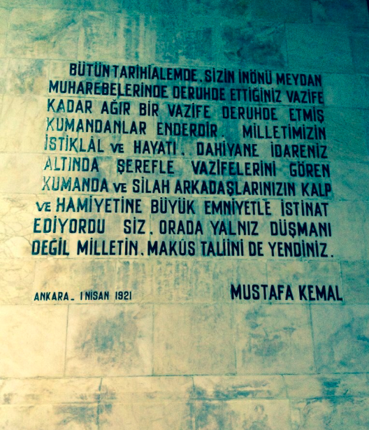 Cuando por fin compro un diccionario descubro que eso no resuelve el conflicto: ni así entiendo esto escrito en un monumento. Claro, al ser una lengua aglutinante, el turco puede concentrar en una sola palabra prefijos, infijos y sufijos, lo vuelve casi imposible encontrar en el diccionario una palabra según su orden alfabético.