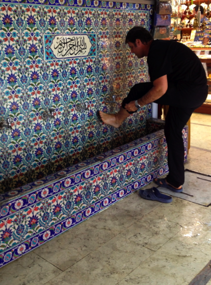 Me imagino que los grifos a los que se refiere son los de las bellísimas llaves públicas donde, como en todo país musulmán, los creyentes realizan la necesaria ablución o Wudu: se lavan boca, cara, brazos y pies antes de los cinco rezos del día. Se trata de un ritual complejo, que empieza diciendo «Bismilláh» (en el nombre de Alá), sigue con la limpieza del cuerpo mientras se recitan versos coránicos y termina con este rezo: «Atestiguo que no hay Dios más que Allah, único e inasociable. Y atestiguo que Muhammad es su profeta, siervo y mensajero. ¡Oh Dios! Cuéntame entre los arrepentidos y los purificados».