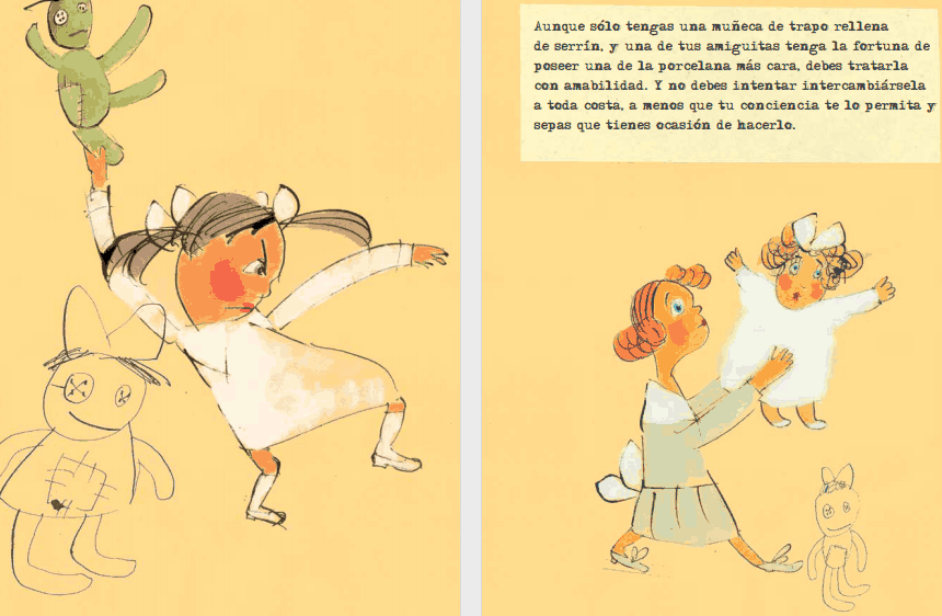 Por muchos años, los libros para niños incluían aburridísimos consejos sobre cómo ser buenos y dóciles, obedientes, respetuosos con los mayores sólo porque lo son. Así fueron educadas generaciones de mansos y bienpensantes. En cambio, Consejos para niñas pequeñas es un breve volumen políticamente incorrecto que dice lo que todos quieren (queremos) oír: acata los caprichos de tus padres mientras no te harten demasiado, finge que obedeces para tranquilizar a tu mamá y luego haz lo que se te antoje, se vale ponerle mala cara a tu maestra si la ocasión lo amerita. Qué joya.