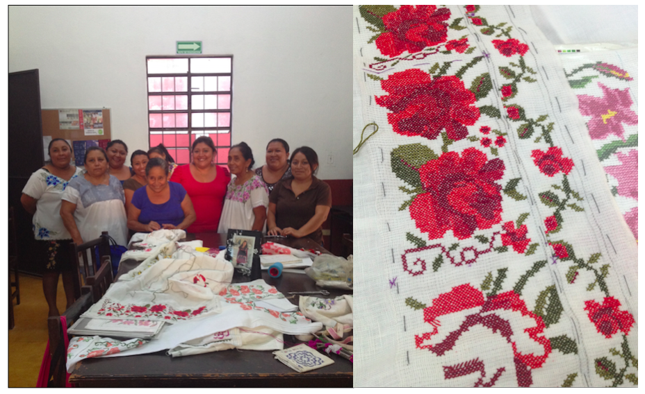 Artesanas de filigrana de plata de la Fundación Haciendas del Mundo Maya.Grupo de bordadoras apoyadas por la Fundación; detalle de su trabajo.