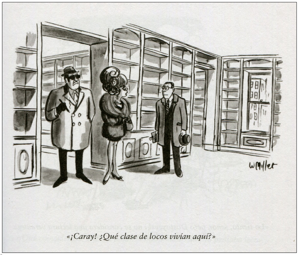 Desde su creación, en 1925, la revista The New Yorker estableció una indiscutible tradición de publicar buen humor gráfico (bueno en el sentido de «eficaz, que hace reír», no en la bostezante acepción moralina). En especial me alegra que uno de sus temas recurrentes sean los libros, los escribidores y también sus cómplices perfectos: los leedores. Y esto no sorprende, dada la vocación literaria de la publicación por cuyas páginas han desfilado autores de primer nivel (Ernest Hemingway, John Updike y Julian Barnes, entre ellos) y han aparecido textos que se han convertido en referente de las letras contemporáneas.