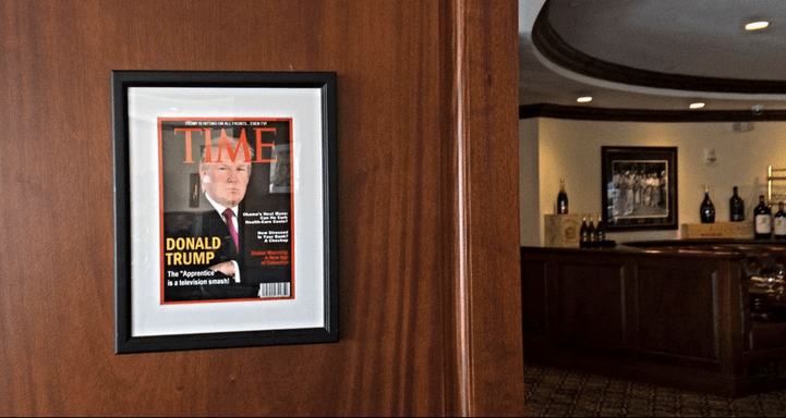 Hace unos días corrió la noticia de que el presidente de los Estados Unidos se mandó hacer una portada falsa de la revista TIME, con su foto y la supuesta fecha de publicación del 1 de marzo de 2009, a propósito del estreno del reality show El Aprendiz. El asunto lo dio a conocer en estos días el periódico The Washington Post, en específico, el periodista David Fahrenthold. El reportero visitó algunos de los 17 campos de golf propiedad del magnate y vio colgada la imagen. Según investigó el diario, luce en al menos otros cuatro campos de golf de Trump.